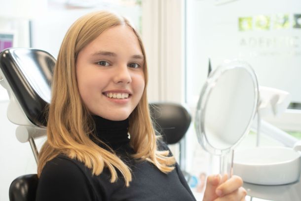 „Ich bin wirklich sehr zufrieden! :) Bevor ich zu Adentics gekommen bin, war ich bei einem anderen Kieferorthopäden, um meinem Traum von einer Invisalign-Schiene näher zu kommen. Ich habe mich dort nicht so gut aufgehoben gefühlt. In dieser Praxis war das sofort ganz anders, man hat direkt ein gutes Bauchgefühl, wenn man die Praxis betritt. Das Team ist immer sehr freundlich, hilfsbereit und antwortet schnell auf Fragen. Auch Termine bekommt man ohne lange Wartezeiten. Die Praxis ist modern und schön gestaltet, man fühlt sich einfach wohl. Ich kann die Praxis wirklich nur weiterempfehlen!“